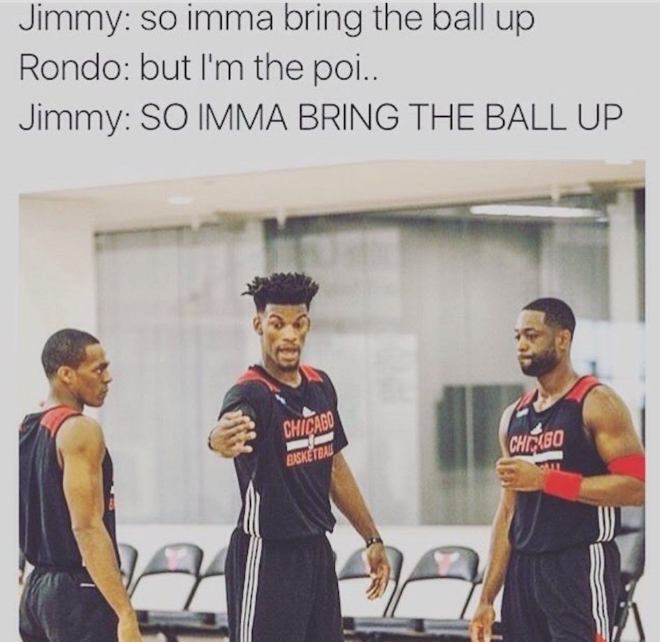 GarPax discontinued The Matadors, and overpaid Dwyane Wade and Rajon Rondo (neither of whom shoot threes particularly well) about six years too late, which led to a divided locker room, another 41-41 season w/ side of first-round exit, and this meme: