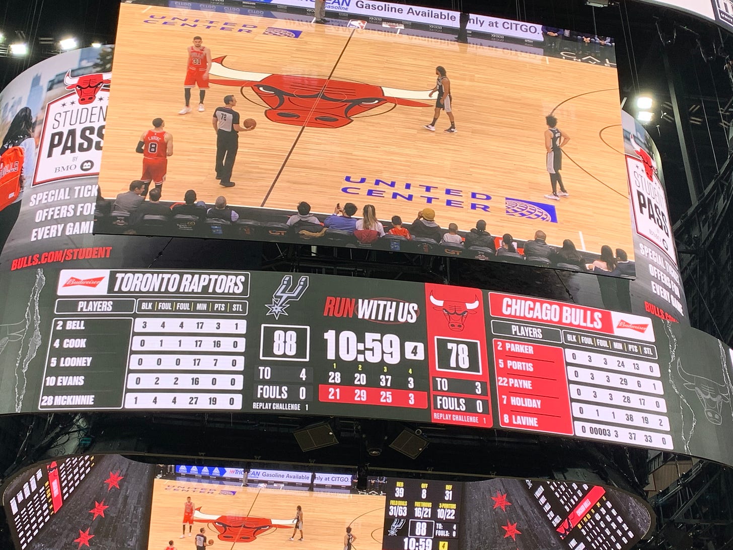 This is a photo c/o my buddy Jacob from a Bulls vs. San Antonio Spurs game this January. Take a minute to look at this and play a game of, “Spot the (In)Difference”: